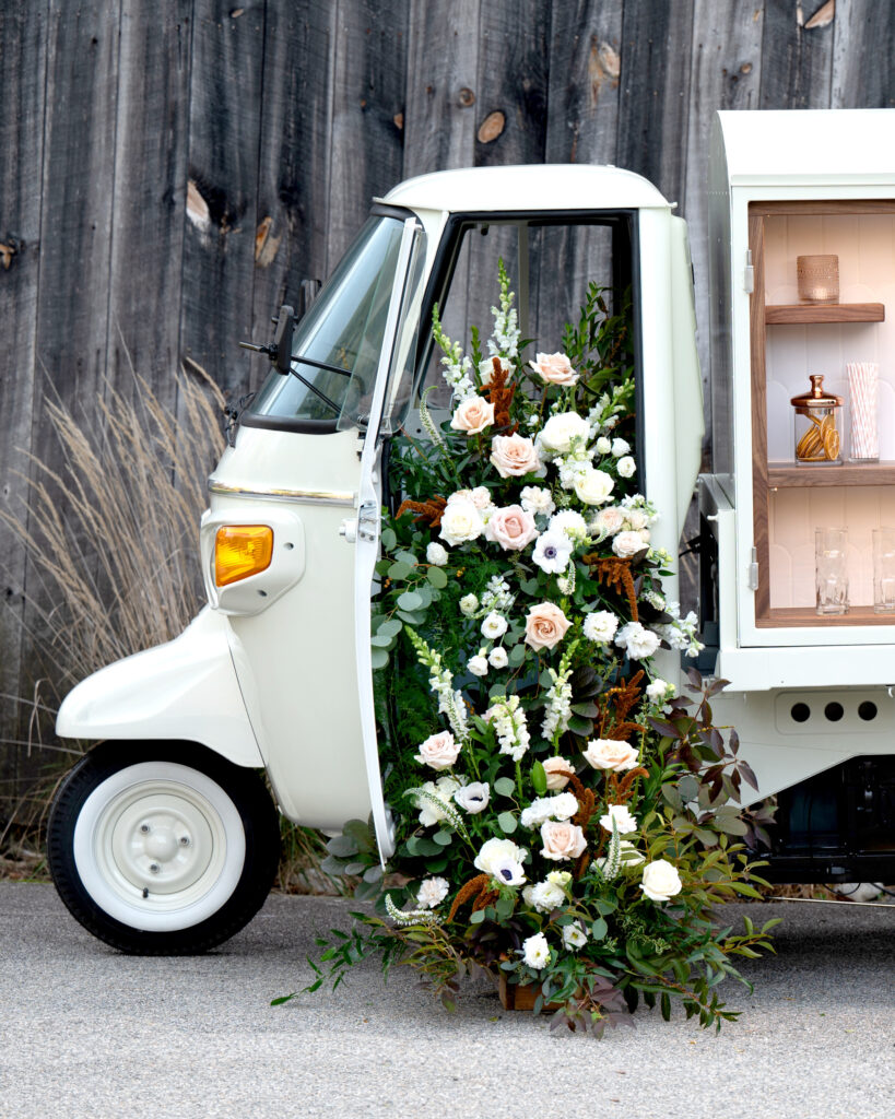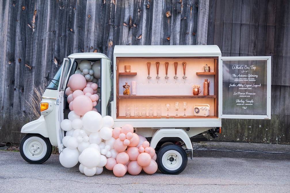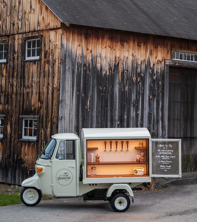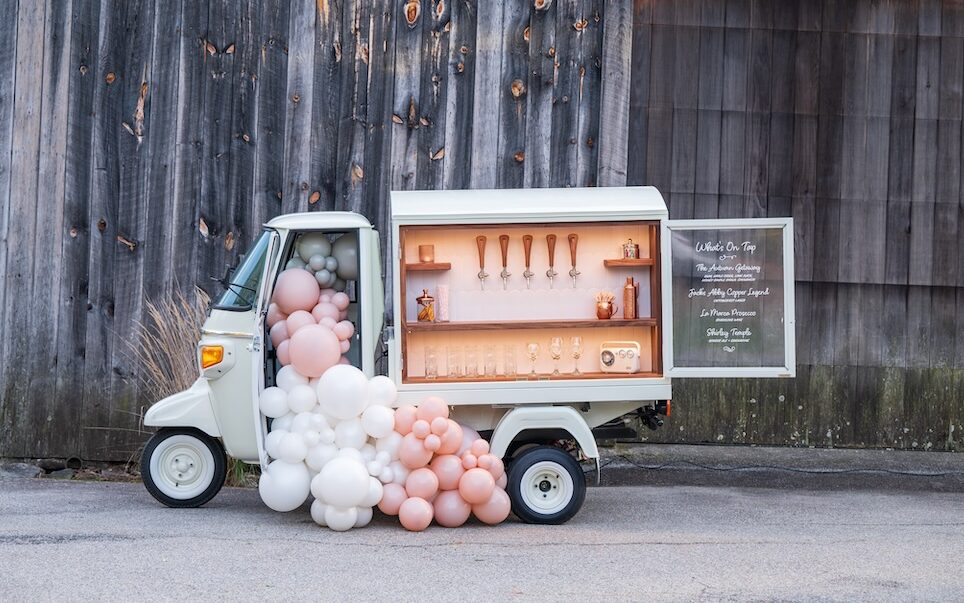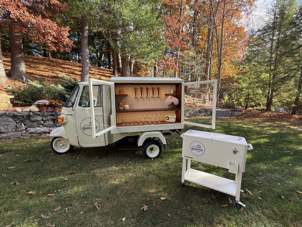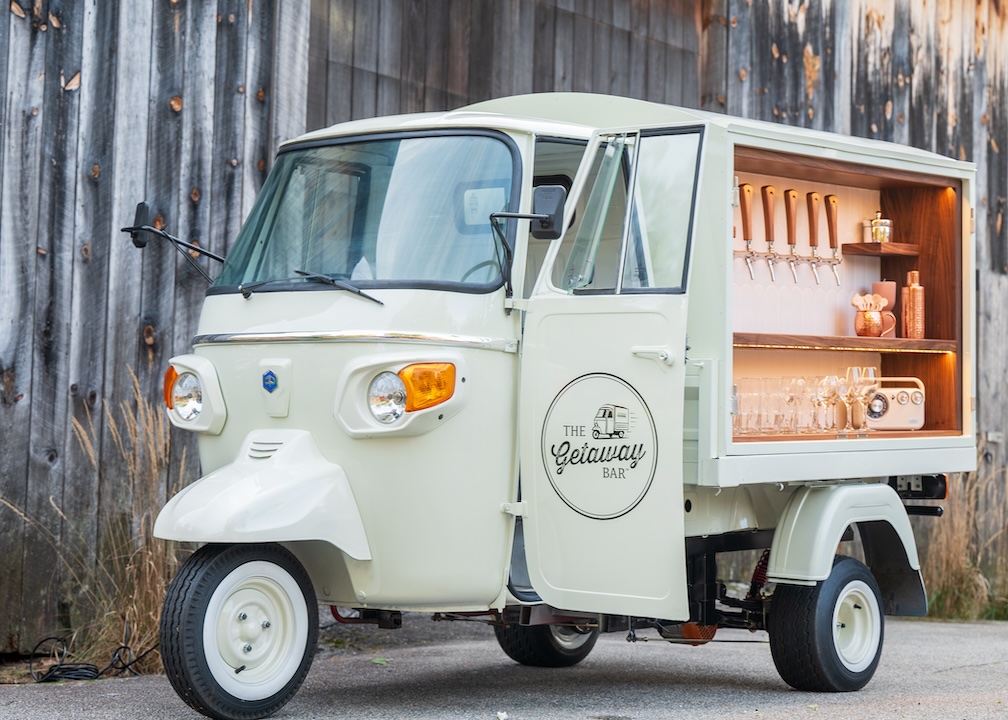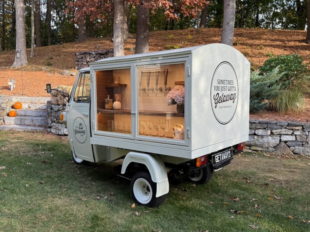The Getaway Bar is a vintage, three-wheeled Piaggio Ape that has been converted into a full-service tap truck, providing mobile bartending services across Greater Boston and Central MA. She’s totally adorable, unbelievably adaptable—and impossible to forget. She will keep your celebration lively, your event running smoothly, and your guests talking for days to come.